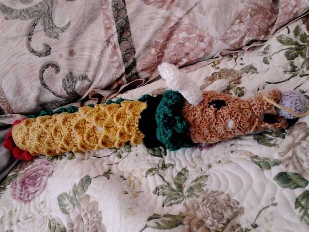 La cabeza era en su mayoría Vieira, con solo/mitad-doble ganchillo para el hocico.