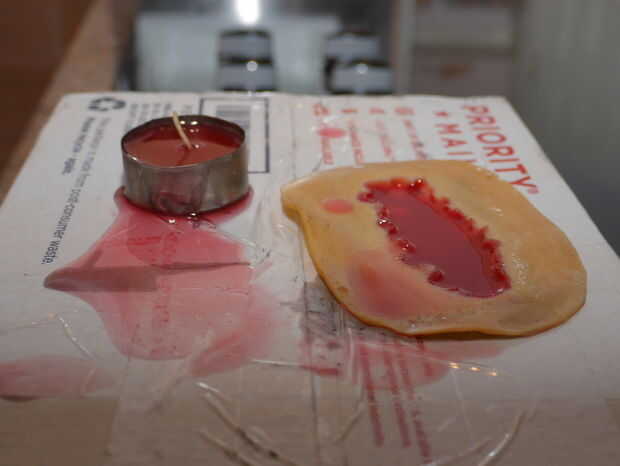 Viértalos con cuidado en el molde, nivelado con la parte superior. Remover para llenar todos los detalles en el molde. La cera encogerá haciendo un hueco conveniente, que le ayudará a encajar el cableado.
