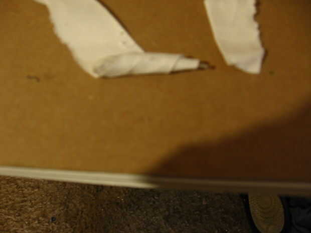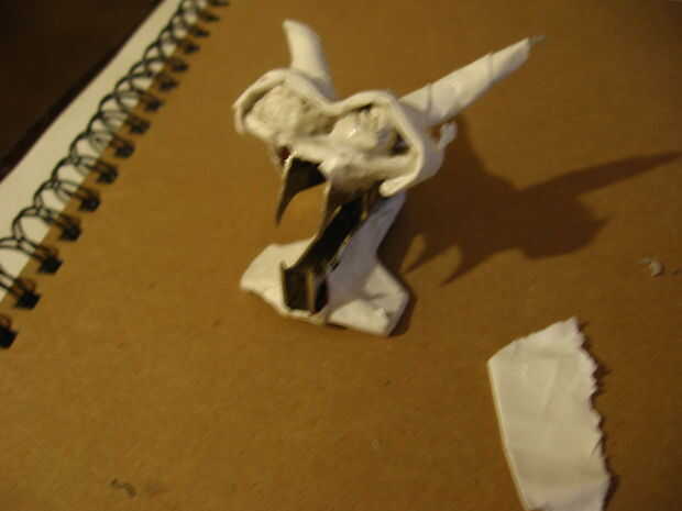formar un cuerno doblando un 4 x 1.5 en tira en tercios largos formas creando un 4 x.5 pulgadas tira y rodar en una espiral clockways de cono. cajón de la segunda girando contra-clockways. Coloque estos detrás de los ojos.