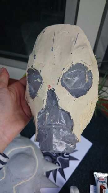 Una vez que la pieza se seca completamente, puede empezar a modelar la parte delantera. Los sacerdotes dragón no tienen máscaras de polgonal, así que tienes que hacer algo al respecto.