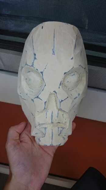 Una vez que has cubierto la máscara con el llenador del cuerpo, tienes que lijar hasta una buena forma y una superficie lisa.