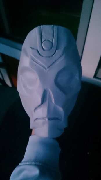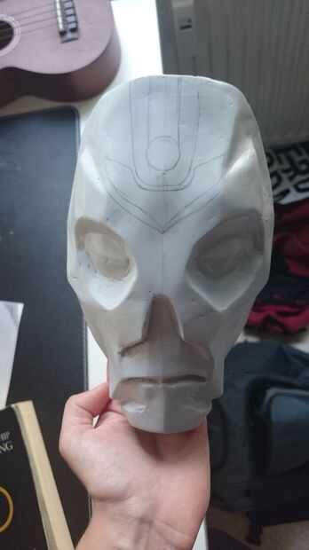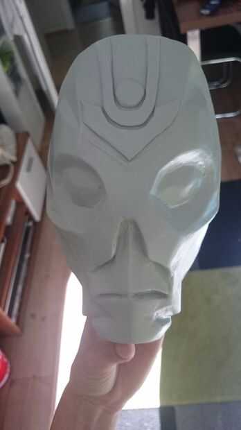 Ahora también es el momento para añadir algunos detalles a la máscara. He añadido las cosas en la frente y había editado algunas partes que fueron demasiado asimétrica y finalmente pintado otra vez.