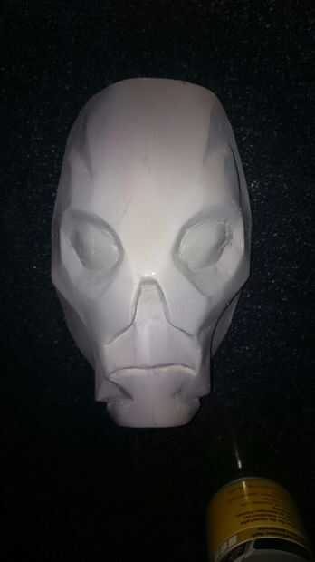 Rocíe una capa uniforme de la cartilla en la máscara y se dará cuenta de que hay más errores a la izquierda en la superficie de lo que pensaba. Ahora puede repetir lijar y rellenar las pequeñas manchas o puede optar por dejarlo así. Decidí dejarlo un poco áspero y desigual porque estas máscaras es vieja y desgastada y no creo que los sacerdotes dragón tiene tiempo para pulir sus máscaras mientras todos los dragon adoradores. No Way son suaves como el culito de un bebé;).