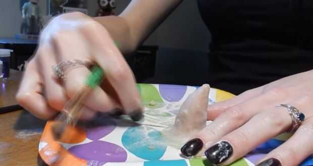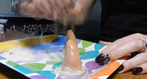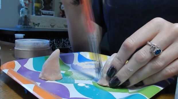 utilizar arcilla seca aire forma los cuernos y dejar seco. Luego los cuernos con el polvo de bebé, de la energía y luego coloque látex líquido en la parte superior y deje secar. No 4 a 5 capas de látex y luego añadir más polvo. Luego pele suavemente apagado.