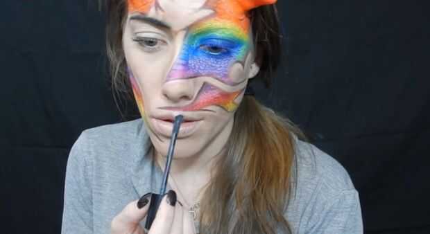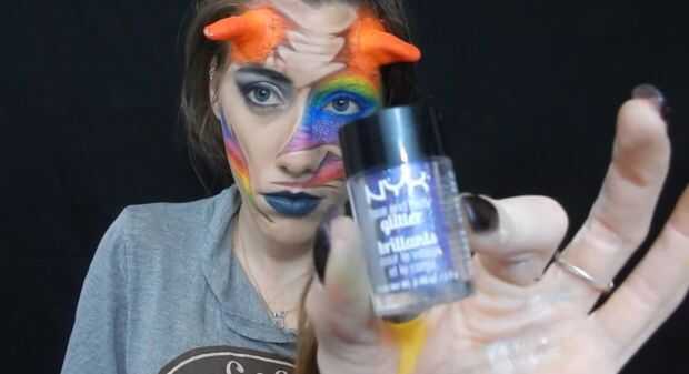 llené en mis labios con el gris, me puse sombra de ojos negra, luego he añadido glitter de teléfono a mi tapa, luego usé delineador negro y rimel negro.