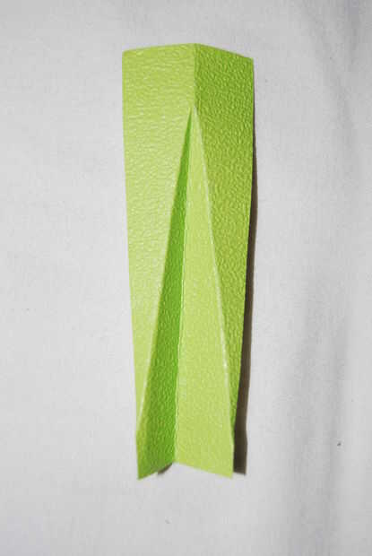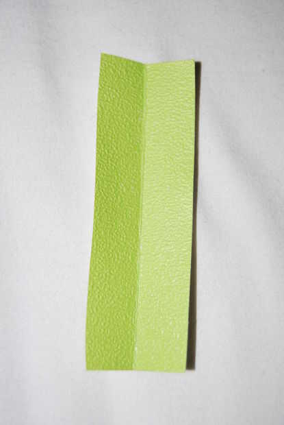 -Doblar la pieza rectangular de papel pintado en una línea vertical por la mitad.  (El color de la imagen de fondo del rectángulo debe ser en el interior del doblez)
