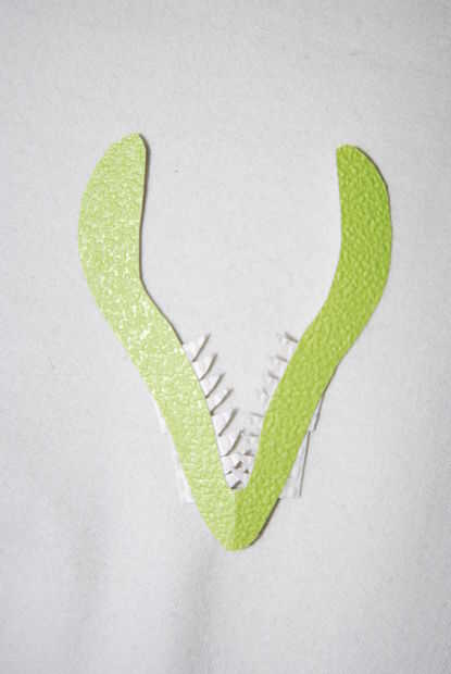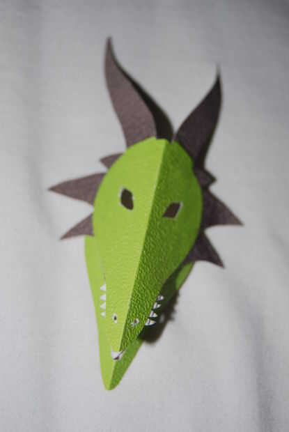 -Pegamento en mi caso las piezas blancas superior y pégala en la parte superior de la cabeza de dragones. La batea superior del papel pintado más estar en la batea superior de la cabeza de dragones.