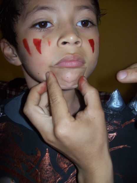 Utilizar la apoyadas de Thor de el año Pasado hecha de foamy Negro y modificada con Diseños Dragoniles, Maquillaje de Guerra y actitud Fiera y Guerrera, no hay imagen mas para conquistar el mundo.