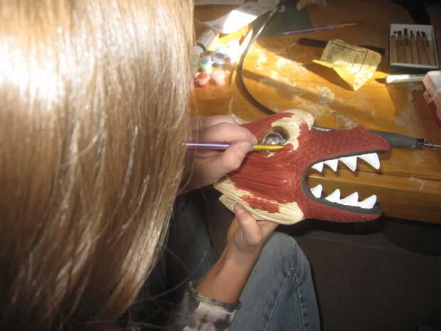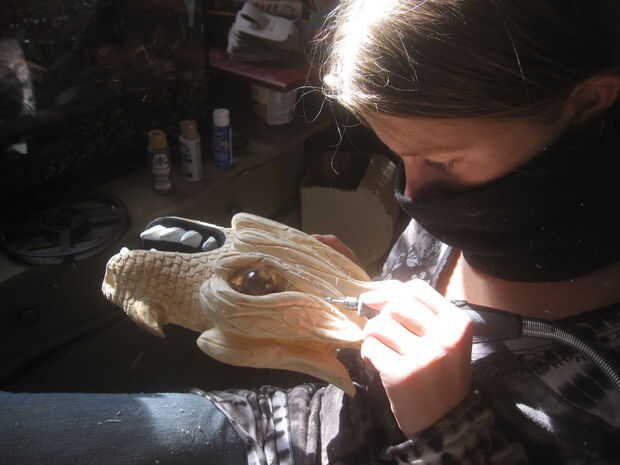 Utilizamos una Dremel con varias fresas de corte pequeña para tallar las escalas y otros detalles. Nosotros también lijar los dientes agradable y suave, así como limpiar los bordes ásperos.
