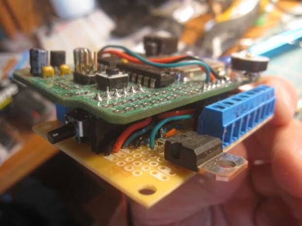 Usted notará en las fotos que no usamos una placa Arduino real... Tuve un par de ATMega328s con el bootloader Arduino brilló sobre ellos y optó por utilizar una de esas en su lugar... La única gran diferencia es que necesitas regular tu propio poder, como necesidad de algún tipo de cable FTDI para programarlo. (no mencionar la soldadura hacia arriba) Si tienes una placa Arduino y puede caber en su espacio, puede ahorrar mucho tiempo de uso solo que.