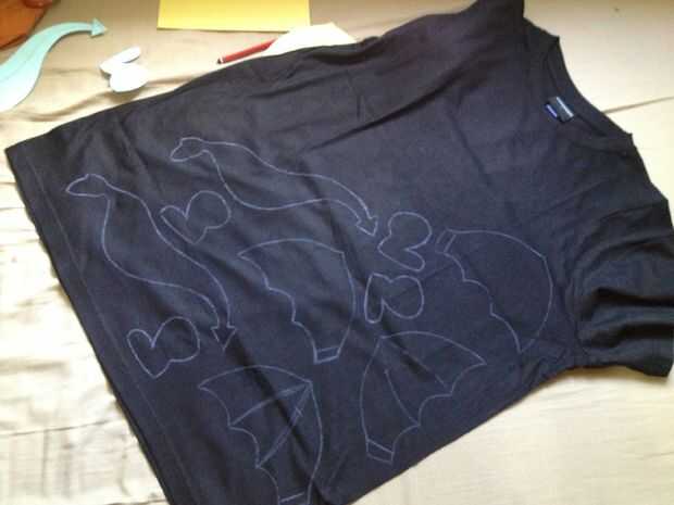 poner las plantillas de papel sobre su camisa y dibuje hacia fuera. Recuerde mover de un tirón las plantillas (no como yo lo hice) También tenga en cuenta que necesitará 4 patas y 4 alas