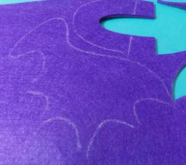 Dibuja el patrón sobre el fieltro ligeramente con tiza para que fácilmente pueda cepillar lejos y realizar cambios si es necesario. He conectado el patrón que he creado para las alas si desea rastrear minas. Imprimir la imagen en una hoja completa de papel de 8.5 "x 11" y será el tamaño correcto, aunque no tenga miedo de cambiar para arriba.