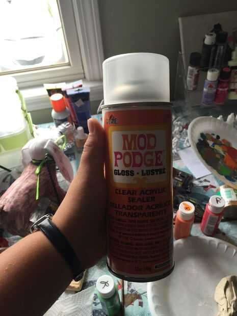 Es el momento de sellar su dragon! Haciendo así hace la pintura dure más y le da un brillo agradable si utilizando lustre. Usar Mod Podge spray en brillo, pero puede usar lo que quieras. Al barnizar, asegúrese de hacerlo en un área abierta con un montón de ventilación.