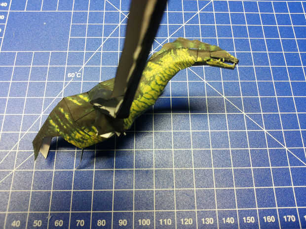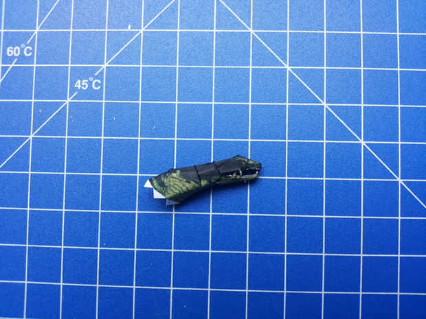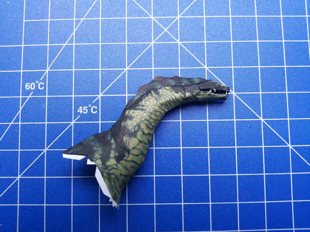 Usted debe comenzar con la parte más pequeña/detallado y es la cabeza. Trabajar su camino hacia la cola y las alas. Pegar la aleta de la aleta y anillo por anillo. Puede también cortar y pegar directamente una parte a la vez para no perder accidentalmente una parte (pequeña).