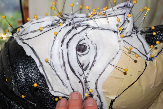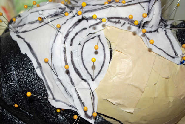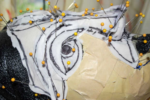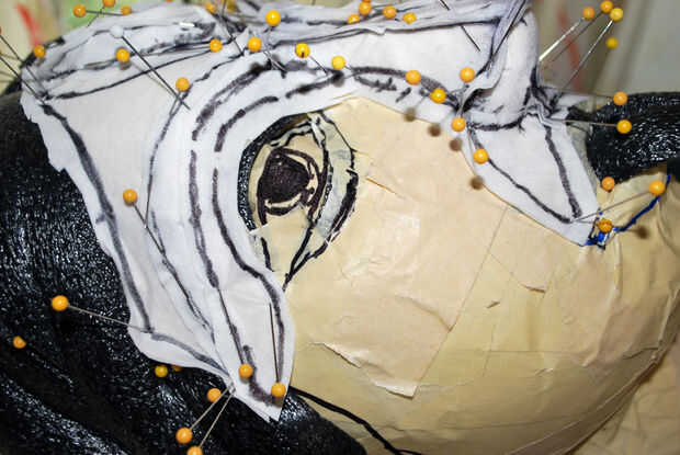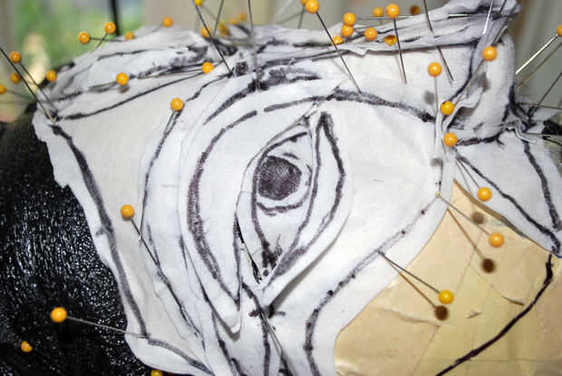 Mi siguiente paso fue cubrir el canto de la ceja, que es el área debajo de la ceja y encima del párpado superior. Cubrió, trazado y Pellon para encajarlo en el área y luego sacó su ojo derecho. Vestido el párpado superior, se trasladó a la área ojo y pómulo y cubierto luego el párpado inferior.