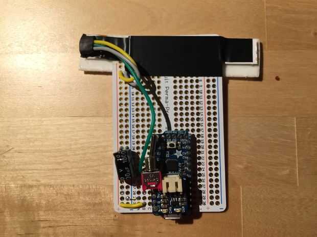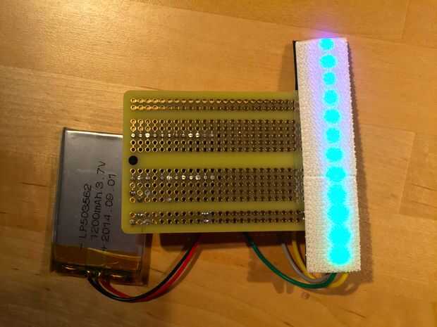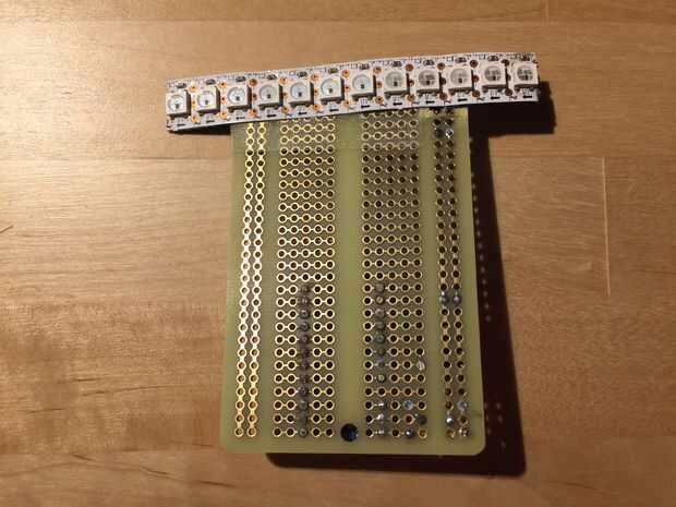 Ahora es el momento para fijar la tira de NeoPixel a la parte superior de la Junta.