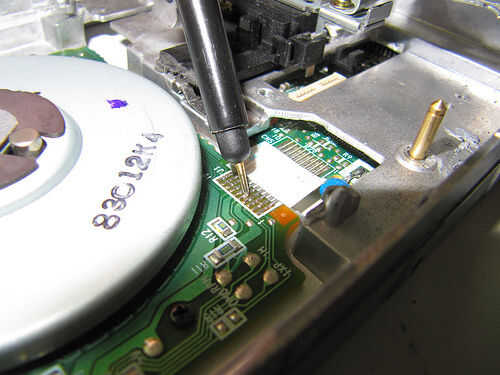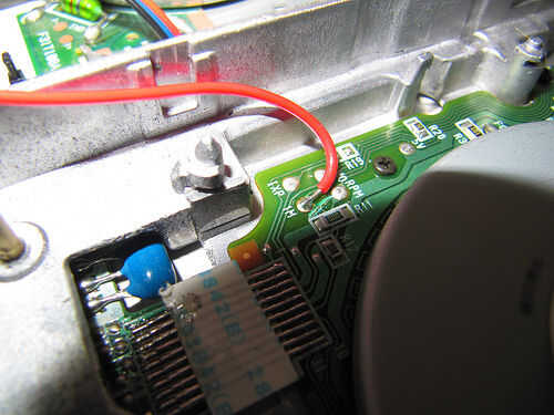 Después de cortar el rastro en el PCB (cuidado de no cortar los demás), un alambre en el lugar cerca de la soldadura y luego conecte esta en pin 5 de arduino.