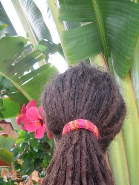 ronda. Tejer hasta que la pieza mide 8,5 pulgadas de 7 pulgadas para los pequeños y Dreadband grandes