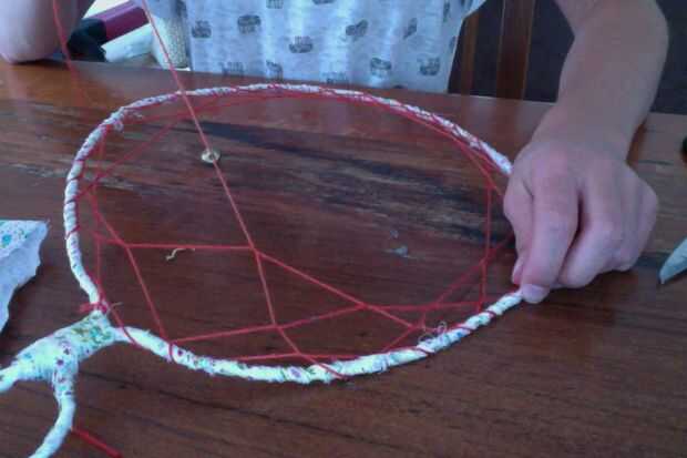 se necesita:•Yarn• cuerda fina• de las cuentas• pistola de pegamento caliente o pegamento• plumas• arcilla• el hornoPaso 1: Tomar la arcilla y forma en un círculo Luego hornearlo por 15 minutos y a 275 grados.Paso 2: Tomar el hilo y pegamento calient