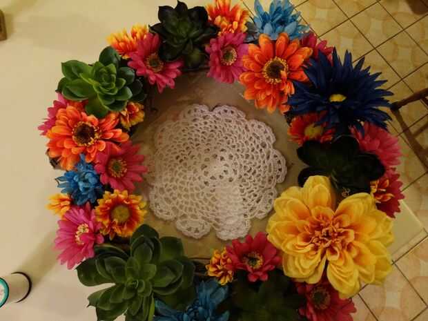 Si el tapete es la misma medida exactamente la abertura de la corona, puede dejarlo como está o cortar más para exagerar la diferencia de tamaño.