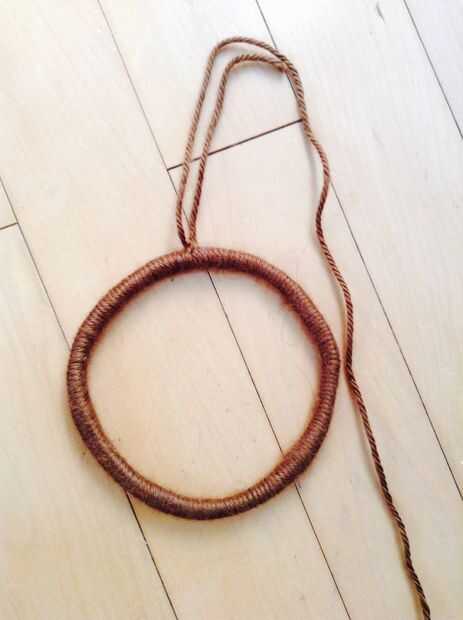Se necesita:1 gran tamaño-llavero1 menor (normal)-llaveroMarrón cuerda o guita3 plumas muy pequeñasgranos pequeños de 9 o 12Blanca cadena / cuerda de algodónPaso 1: Paso unoPuede omitir este paso si no desea hacer el bucle brown.wrap el aro grande co