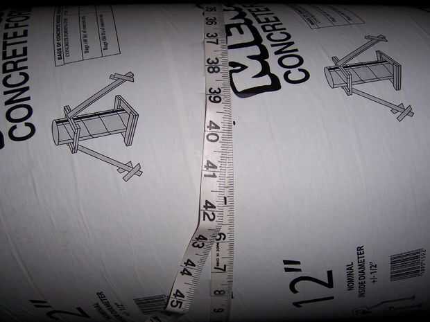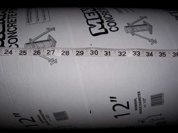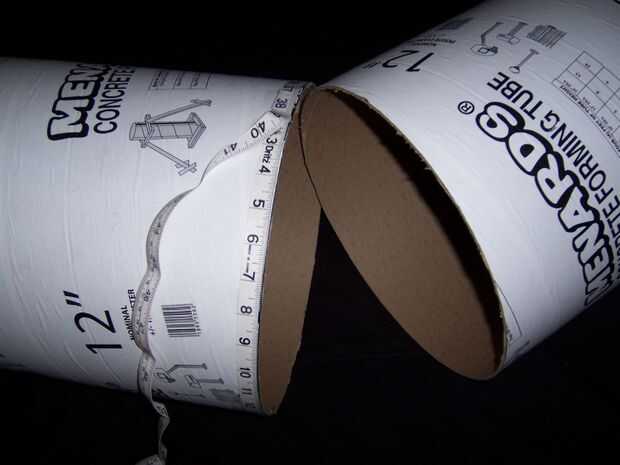 La forma más fácil que encontré para hacer esto es tomar una cinta métrica flexible y mida 30" de un extremo en un par de puntos alrededor del cilindro. Luego, utilizando estos puntos, envuelva la cinta métrica en las marcas y cinta adhesiva en su lugar. Luego, utiliza un marcador de punta y marcó una línea alrededor del tubo. Con la navaja, corte con cuidado esta línea para hacer un tubo de 30" de altura. Fácil!