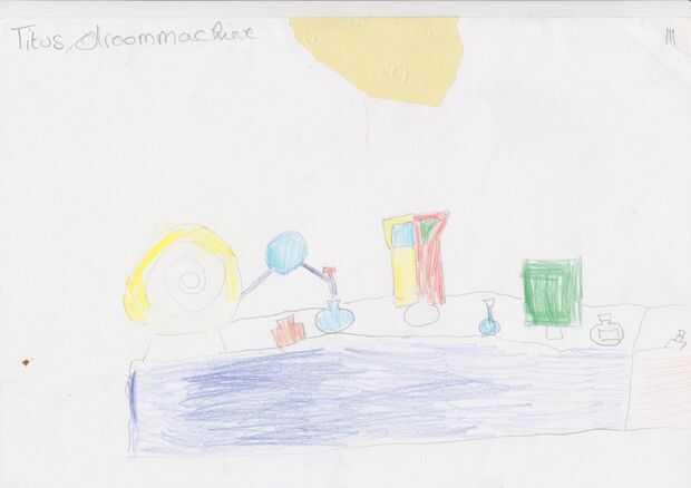 Tito (6years viejo) quería diseñar una máquina así nunca tendría pesadillas ya puede elegir al tema de sus sueños.
