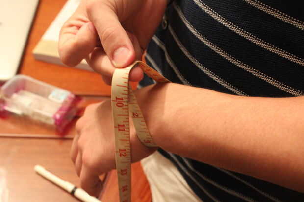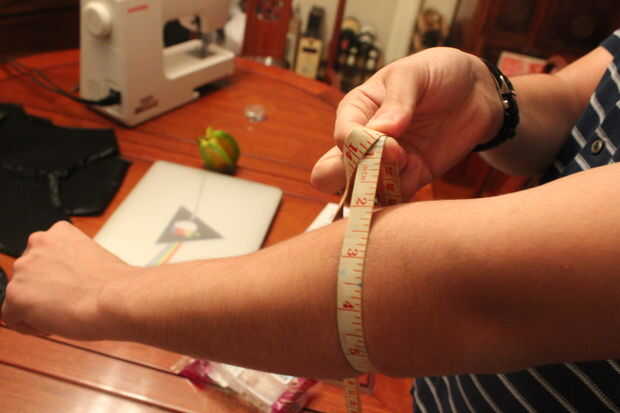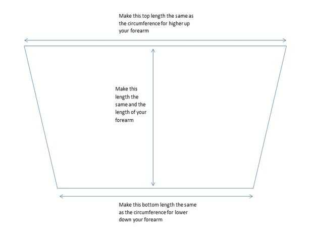 Para hacer las plantillas para tus guantes Mida la circunferencia alrededor de su muñeca y justo debajo de su codo, debe añadir aproximadamente 2 pulgadas en ambas mediciones para que los guantes pueden caber sobre la manga de su chaqueta. Puede entonces toma estas medidas y hace la plantilla, como se describe en una de las imágenes de arriba.