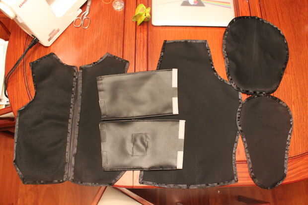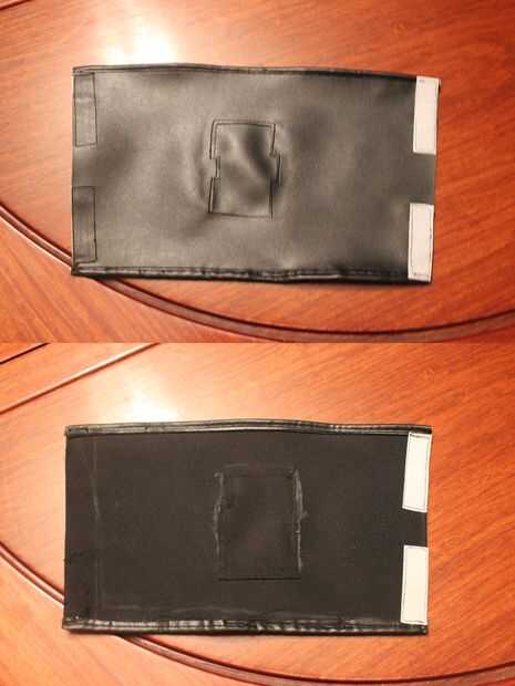 Una vez que se recortan las plantillas, utilice su máquina de coser para coser la tubería de cuero en los bordes superior e inferior y corte a la longitud, hacerlo para que sea fácil ponerse y quitarse sus guantes puede coser unas tiras de velcro en la piel artificial como se muestra en la imagen de arriba. Alternativamente usted podría también fácilmente coser una cremallera en los guanteletes en su lugar.