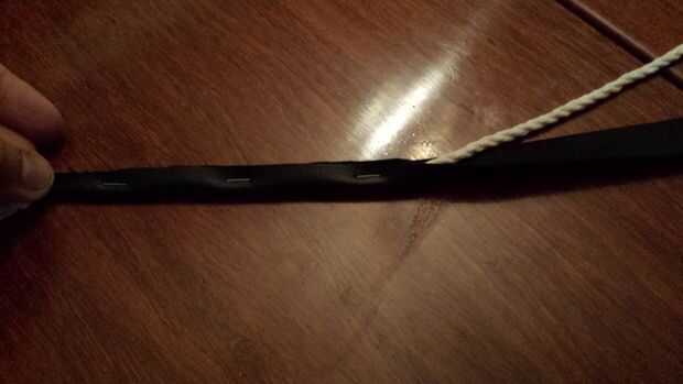 Para hacer los guanteletes de cuero que va a utilizar la piel artificial negro compró. Requiere de algunos tubos de cuero y porque yo no pude fuente en Hong Kong que hice mi propio. Para hacer esto tomar su cadena gruesa y corte una longitud larga de la misma, así como una tira larga de su piel artificial cerca de 1 pulgada de ancho, lo hacen como posiblemente puede hacerlo como usted necesita la tubería para el guantelete y el collar que viene más adelante.
