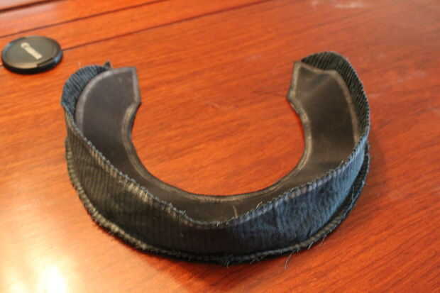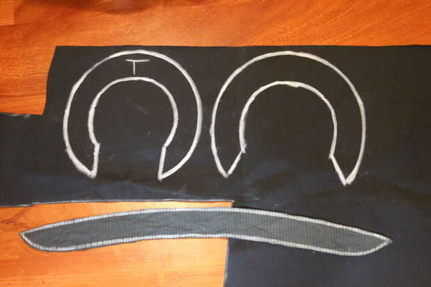 Usar mis plantillas que usted puede hacer un juez bastante preciso collar de dredd, realmente mejora la plantilla después de hacer el collar para mí por lo que debe ser un tamaño y la forma más precisa cuando haces tuya con mi plantilla actualizada. Se desea utilizar tiza blanca para trazar el dos "U" en forma de plantillas en piel artificial negro y la plantilla de la tira larga a su pana negro. Intentar tener el grano de la pana perpendicular a la tira. No olvide comprobar el archivo pepakura y marcan que en forma de "U" es la pieza superior y que es la parte inferior, esto ayuda más tarde.