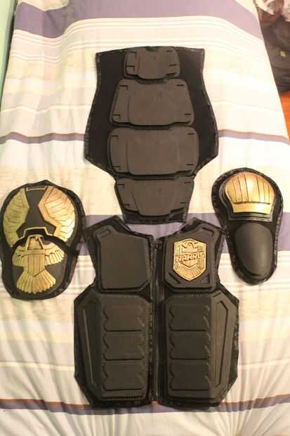 Para colocar sus placas de armadura como la parte de atrás, la armadura delantera y hombro, se coserles a las piezas de tela que acaba de hacer uso de cordón de cuero negro.