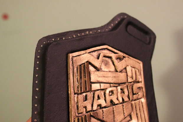 Si usted ha utilizado worbla que necesita para hacer agujeros en ella como usted mano costuras la armadura. Tomar un clavo o un tornillo y sobre una tabla para picar de madera martillo el clavo hacia abajo en el recipiente de plástico a intervalos regulares (de 1 orificio cada 1 cm o menos). Esto ayuda a delimitar con precisión todas las posiciones que necesita perforar y facilitará que la broca se sentará en la abolladura crear a partir de ese proceso. Entonces simplemente perfore a través de cada una de estas marcas con una broca fina (yo usé una broca de 1,5 mm). Una vez hecho esto puede empezar a coser la armadura en a mano usando una aguja de coser y su cordón de cuero negro, asegúrese de coser en apretado.