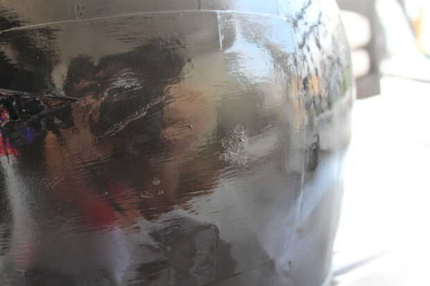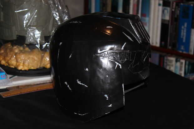 Luego pintar sobre el casco todo en metálico negro, en una de las imágenes de arriba que puedes ver los lugares donde la vaselina debajo de la capa de negro recién pintada. Deje que el negro seco nuevamente por aproximadamente una hora y una vez que se le ha secado la pintura negra puede tomar un trapo y limpie el área donde usted pintado vaselina. Si la pintura no chip inmediatamente puede usar la uña raspar suavemente la zona donde la vaselina es/era y debe viruta lejos revelando la capa de base plata.