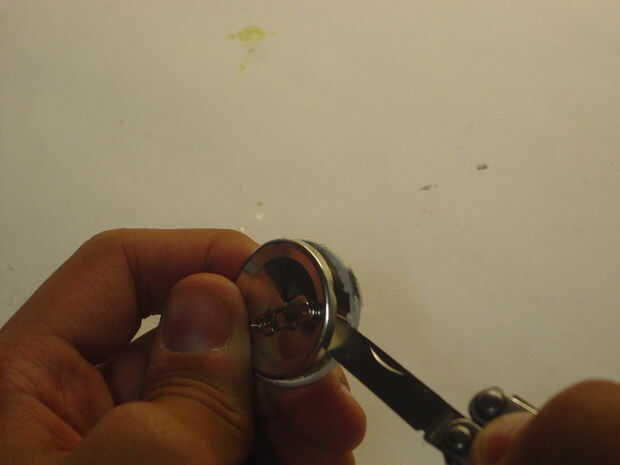 separar la parte superior con la tapa de la parte inferior utilizando un destornillador plano, cuchillo o cualquier relativamente sharf y elemento plano