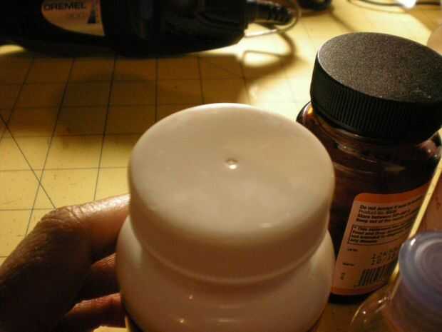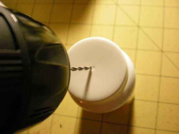 Una de las mejores cosas de algunas tapas de botella de plástico es que ya está marcado el centro muerto! No hay ángulos rectos, sin esquinas de papel, no echando un vistazo. Use un marcador negro para hacerlo más fácil de ver! Asegúrese de que la tapa se enrosca en la botella original, mantenga en la botella y taladro lentamente! Plástico fácilmente mangles y si vas demasiado rápido te deja con un agujero descolocado y un montón de hilos de plástico.