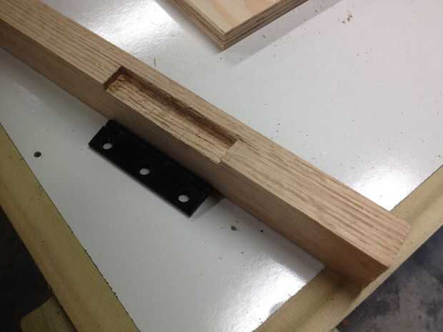 Corte una ranura de la bisagra 3 pulgadas del extremo de la (1 y 1/4-11) corte. Tornillo de la bisagra en la ranura, luego el arriba (1 y 1/4-9) de el tornillo.