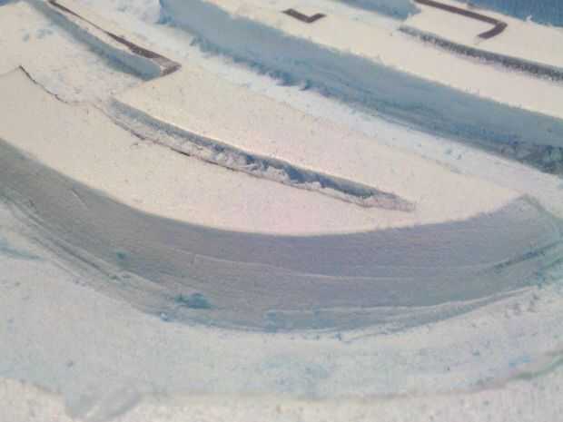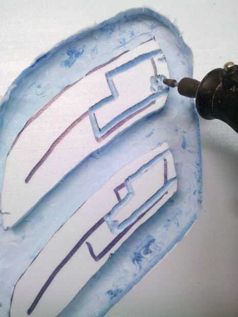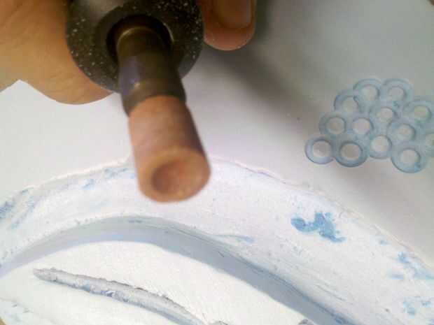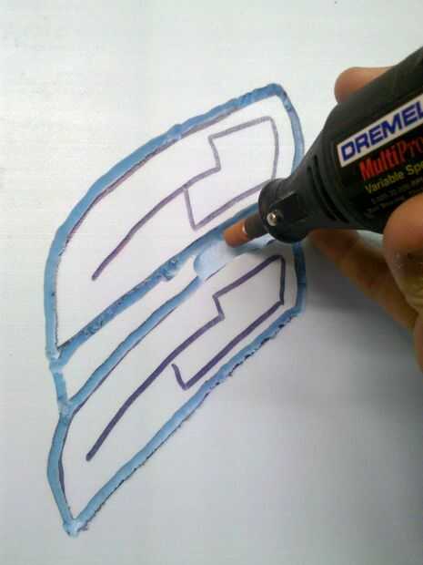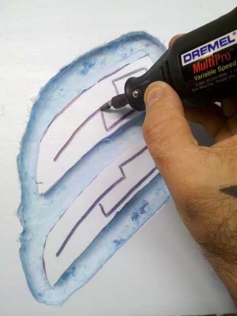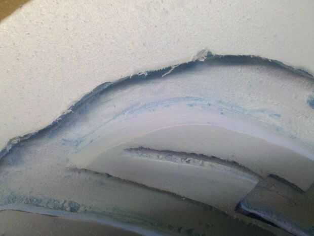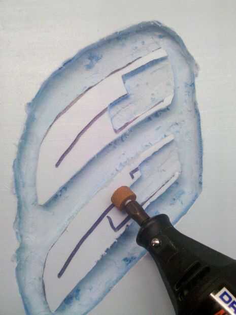 Ahora quiere a v bits o ángulo sus bordes por lo que tienen la apariencia de voltearse en sus áreas de corte. Utiliza la herramienta de lijado para este paso continuación, alisar con la herramienta de piedra media. Una vez que todo el corte tienes que encontrar una lija superior o alto grano 120 y todas sus áreas de corte liso, no tienen que ser perfecta ya que esto hará un molde plano y lijado el yeso es súper fácil. Más probable es que tienes que hacer una arena de detalle en el molde de yeso de todos modos. Tenga cuidado de no lijar demasiado o terminarás con bolsas profundas. Dar este paso lenta y cuidadosamente, los pacientes son una virtud aquí!!!!