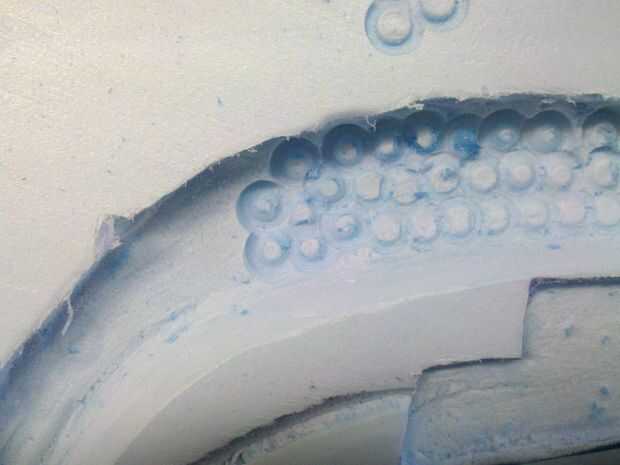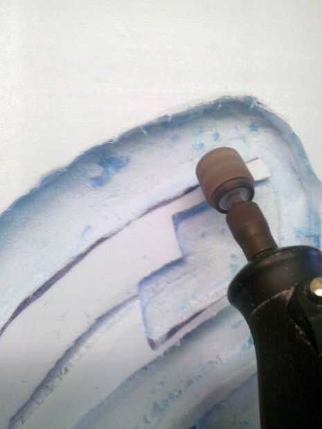 Una vez lijado, puede Agregar el detalle de la malla a su área de corte más profundo. Un destornillador de cabeza Phillips funcionará perfecto para este paso; suavemente empujar la cabeza de destornilladores en el área más profundo del corte gire el destornillador cada vez para obtener un patrón de x t. Si usted está buscando para pasar más tiempo en esto y es realmente ambiciosa puede utilizar su herramienta de piedra mediana para la malla así. Si nos fijamos en la parte inferior usted notará un vacío en la herramienta, esto es perfecto para el look de la malla. Simplemente sostenga a un ángulo de 90 grados y presione en la espuma. Me salté este paso porque me gustó el aspecto de un traje liso como se opone a la malla bajo la lay. Qué es suya!!!!