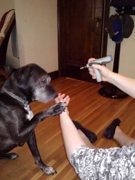 Inicio aclimate su perro poco a poco el ruido de la Dremel dándole golosinas mientras se ejecuta la Dremel, sin tocar a los clavos de su perro. Esto puede tomar algunos días o semanas.