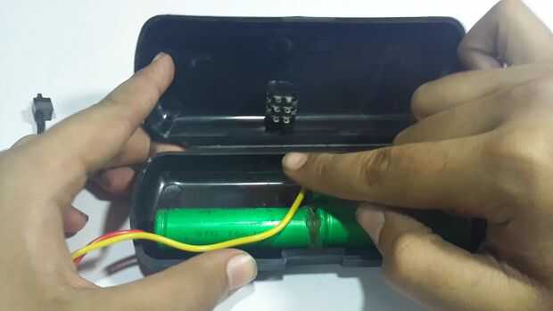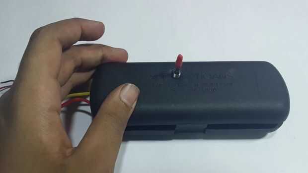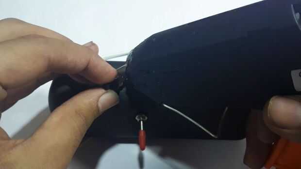 Ahora pasé los cables del interruptor momentáneo a través del segundo agujero y utilizado mi caliente pegamento pistola a montar sobre el caso.