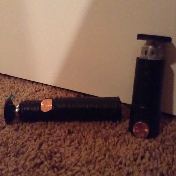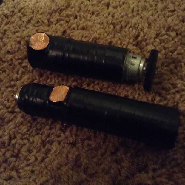 Cuando su mano sostiene el dremel empuja el alambre en el penny completar el circuito haciendo que el motor gire.