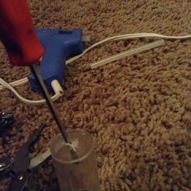 Utilice la punta del destornillador para martillo un agujero para los cables en el primer contenedor.