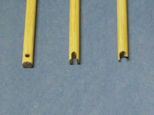 Foto #4: Para preparar el eje, cortar 3-1/2", 1/8" taladro 1/4" de un extremo y con forma de fresa de carburo una ranura en el extremo, luego forma al final como en la foto #5.