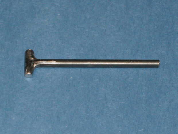 a fab el perno que corte la caña de un 1/8 broca en dos pedazos, cada 1-1/2" long. Para hacerlas encajar bien peces de boca al final de uno de ellos con un diámetro de 3/16 bit en mi Dremel herramienta de pulido. Sujeta el extremo opuesto de la pieza de boca de pescado directamente en la pinza de masa de un alambre soldador, celebrada las dos piezas juntas para formar una "T" y los soldados con autógena juntos. Limpiar la soldadura con un cepillo de alambre pequeño y recortado el final T 7/16".