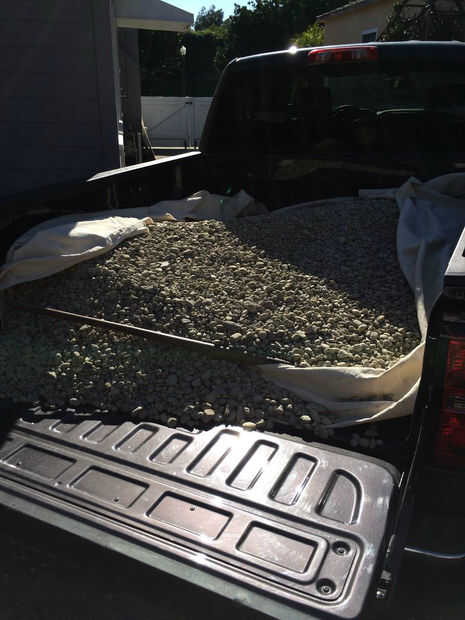 Realmente no gastar mucha pasta en este proyecto. La cuenca fue lo más caro. La tubería estaba super barata. Y la grava y el cañón consiguió en Craigslist. La 2da carga de grava (foto) que realmente tuve que comprar porque la primera carga no era suficiente. Total, que necesitaba de 2 yardas cúbicas de grava del 3/4"- 1", que me funcionó unos $65.