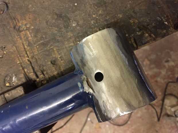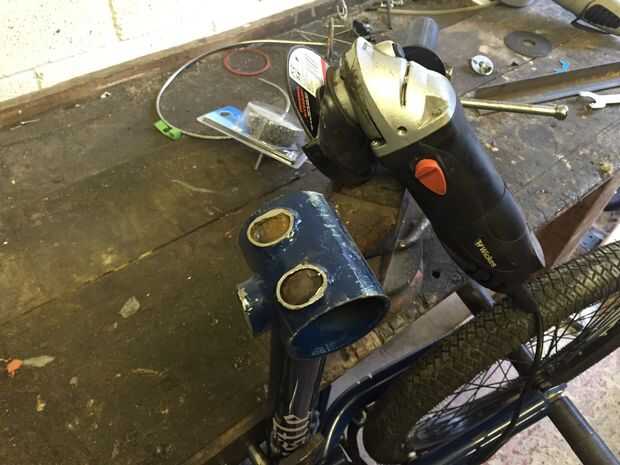 LECCIONES aprendidas: creo que la próxima vez te tira la pintura de la moto primero (véase los pasos más adelante) y luego usar el disco de aleta sólo cuando sea necesario para eliminar los restos de los tubos del armazón. No lo utilice para quitar la pintura 'limpiar' la zona lista para soldar. Será muy difícil después obtener un acabado liso listo para pintar después (como me enteré de la manera más difícil!)