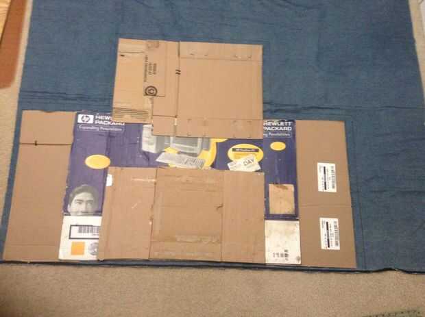 He utilizado pedazos de desecho de cartón cortado a las dimensiones de mi Hanon y añade aproximadamente una pulgada a la medida. Baggy es mejor que demasiado apretado. Mi Hanon mide aproximadamente 25" x 26" ancho x 15" alto profundo. Hice la caja de cartón de esas dimensiones. Mi primer uso del modelo de cartón era como un patrón plano, por lo que no cinta adhesiva en forma de caja todavía. Pruebo para ver si mi modelo mi Hanon. Lo ha hecho.