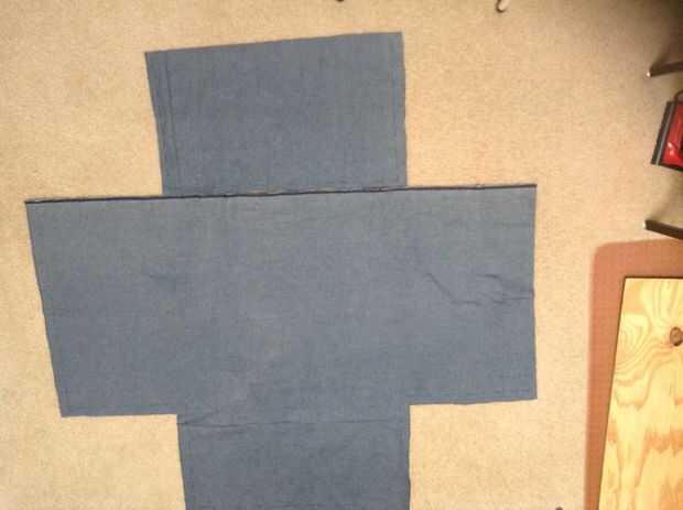 Utilizando el modelo de cartón, me di cuenta de un patrón de corte que se ve como el diagrama de arriba. Mis metas con el patrón de corte fueron para reducir al mínimo las costuras cosidas y maximizar el uso eficiente de la tela. Es enteramente posible cortar la tela en forma de Cruz y eliminar una costura cosida, pero que habría hecho más perdidos pedazos de tela. Por lo tanto, elegí este modelo.