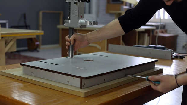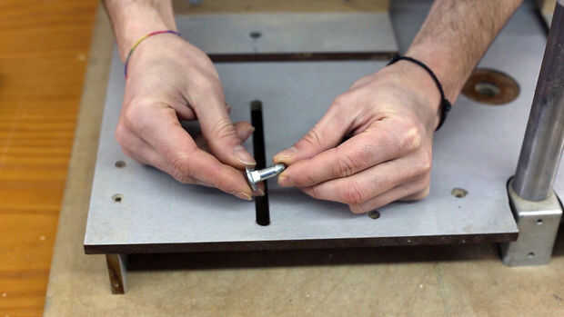 Foto3-quitar este tornillo podemos ver cómo este cuatro pernos están sosteniendo el taladro a la base, hecho del MDF.